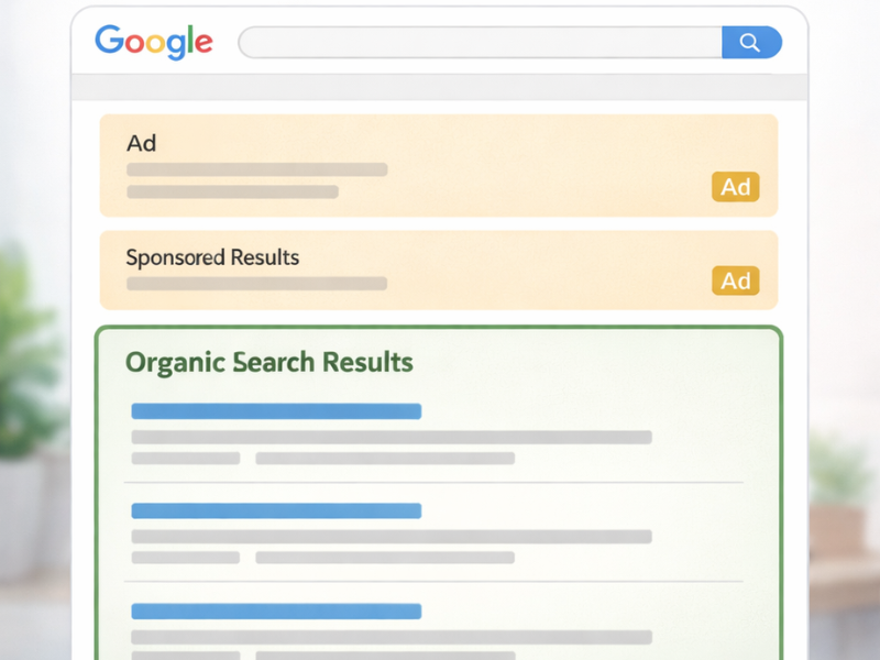 These listings are driven by website quality, relevance, authority, and location signals. Organic search is a long-term asset — once you rank, leads continue without ongoing ad spend.